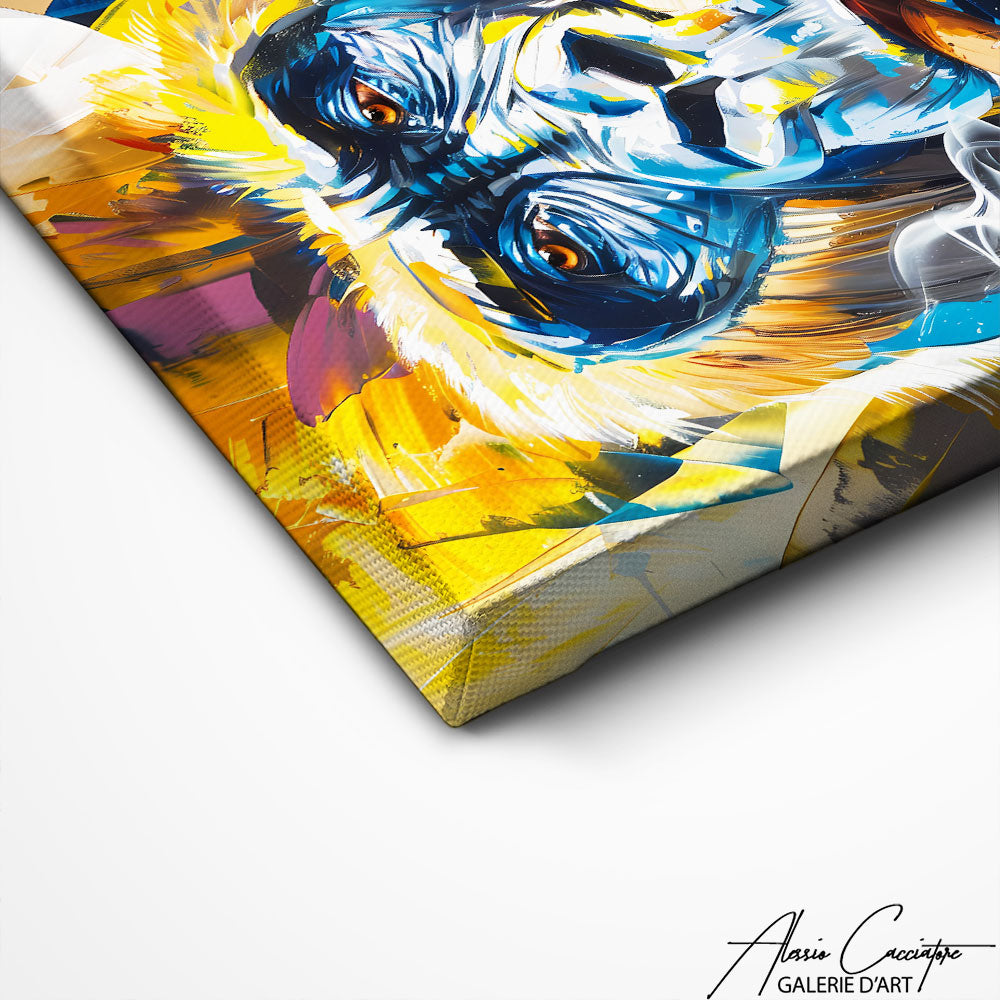 Captivant et inattendu, notre tableau gorille avec cigare offre un contraste visuel saisissant et une touche d'ironie. Cette œuvre attire l'œil et provoque la réflexion, parfaite pour les espaces modernes qui cherchent à intégrer un art à la fois audacieux et humoristique.