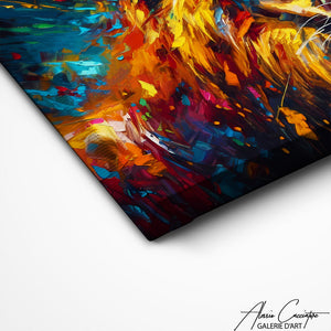 Nos toiles sont imprimées grâce à une encre spéciale resistante aux UV. Cette encre protège les couleurs au fil des années pour conserver le contraste de la peinture.