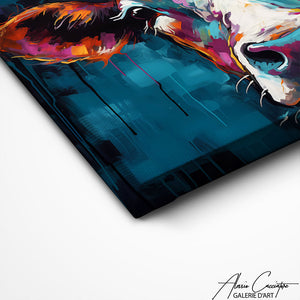 Injectez une touche de fantaisie à votre décoration avec notre tableau vache pop art. Parfait mélange de couleur et de sophistication, ce tableau rend hommage à la beauté rustique des vaches à travers une lentille colorée et joyeuse