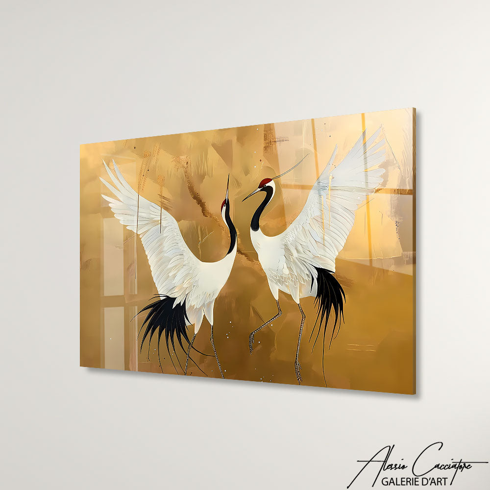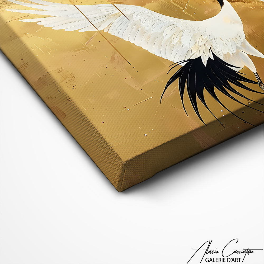 Créez un espace accueillant et apaisant avec ce tableau zen, dont les grues et les couleurs invitent à la détente et au bien-être. Idéal pour instaurer une atmosphère de calme et de sérénité dans votre espace de vie.