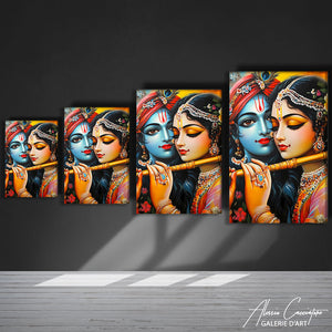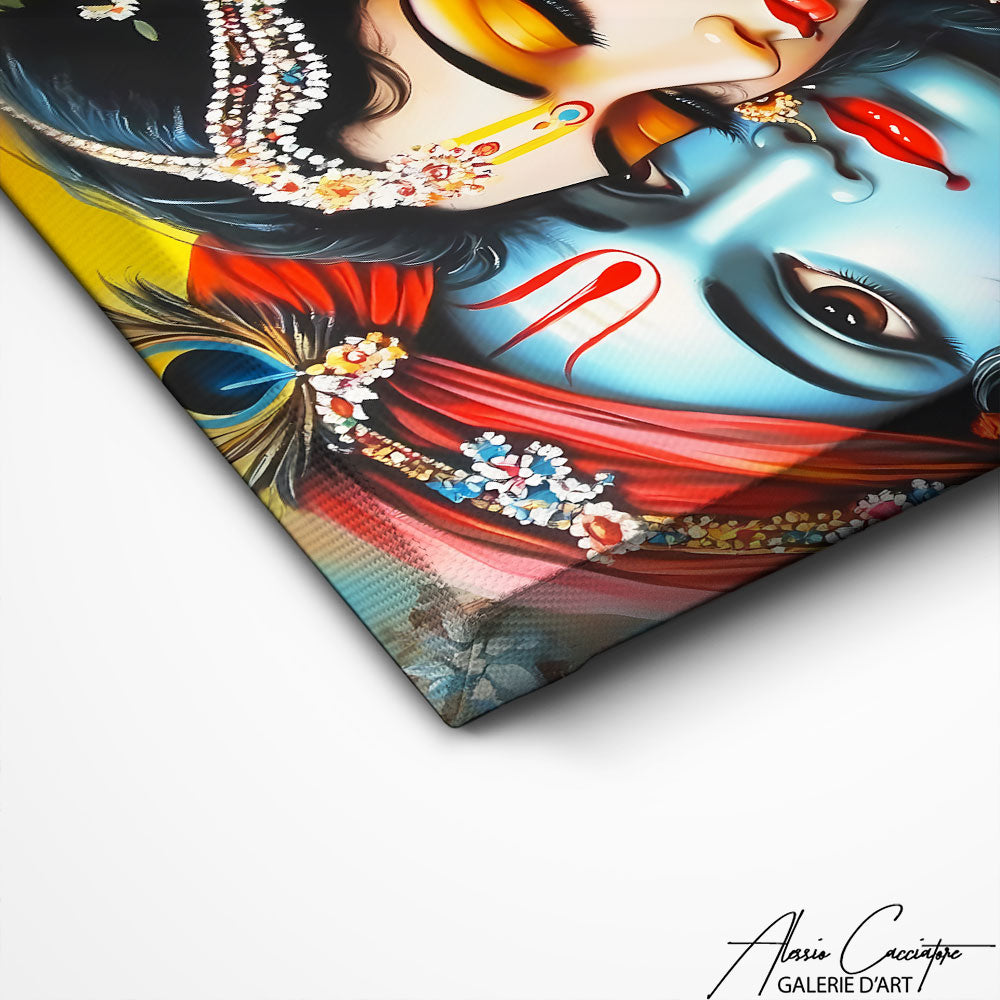 Notre tableau spirituel indien met en scène une représentation tendre et spirituelle de deux âmes unies dans l’amour divin. Les couleurs intenses, les bijoux étincelants et la profondeur des regards confèrent à cette œuvre une aura mystique et poétique. Parfait pour les amateurs d’art spirituel et de culture orientale, ce tableau dégage une chaleur émotionnelle unique. Imprimé sur toile de qualité supérieure, il incarne la passion et la beauté éternelle.