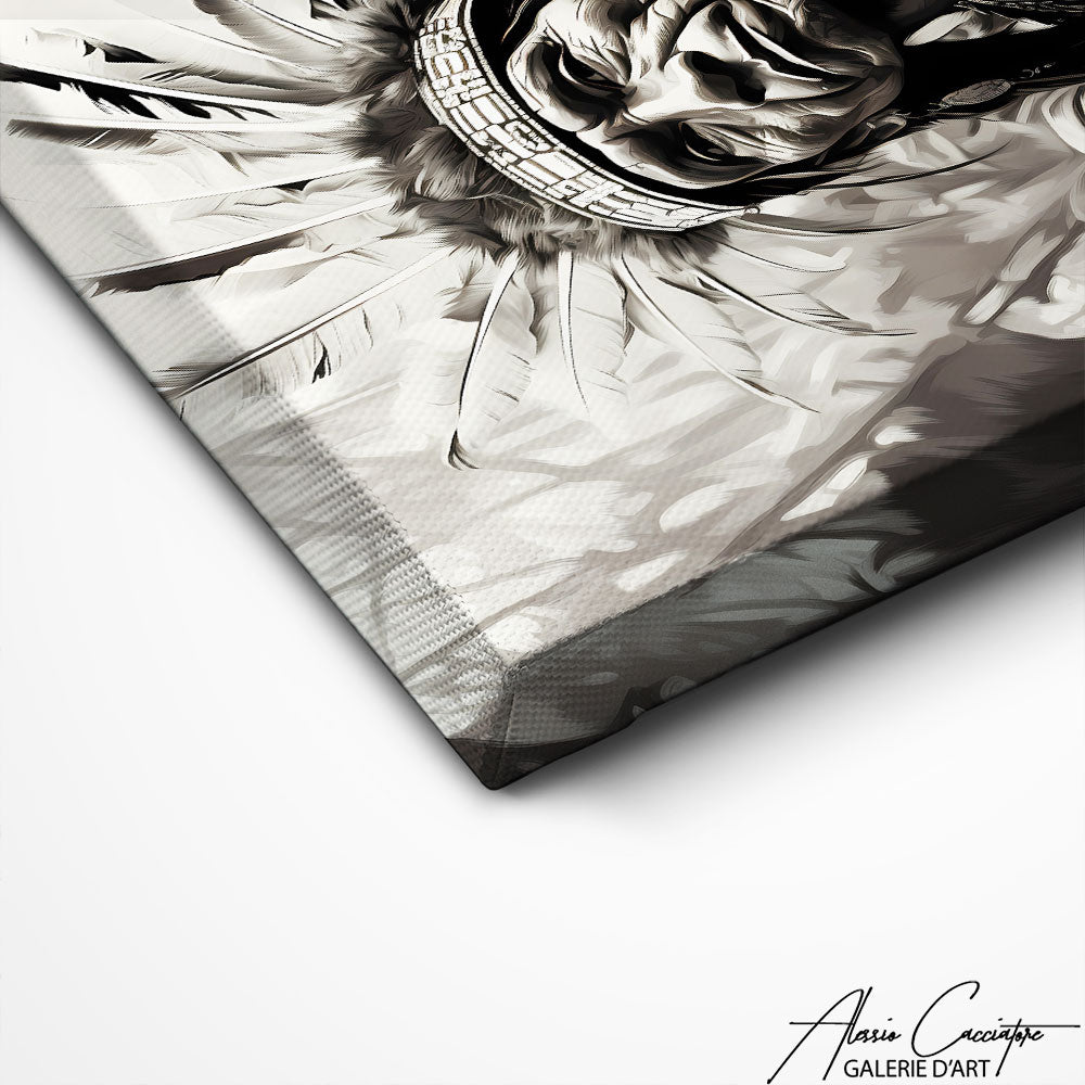 Notre Tableau Amérindien capture l'esprit et la beauté des traditions amérindiennes. Avec son style noir et blanc abstrait, cette œuvre d'art est parfaite pour apporter une touche d'authenticité et de sagesse ancestrale à votre intérieur.