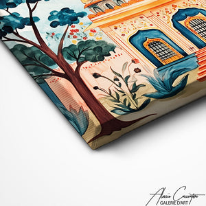 Notre tableau Inde capture l’âme architecturale et spirituelle du pays à travers un palais majestueux entouré de végétation luxuriante. Les couleurs douces et les détails précis évoquent les charmes de l’Inde royale et la sérénité de ses jardins. Idéal pour une décoration élégante et dépaysante, ce tableau est une véritable invitation au voyage. Réalisé sur toile de qualité supérieure, il garantit un rendu artistique d’une finesse remarquable.