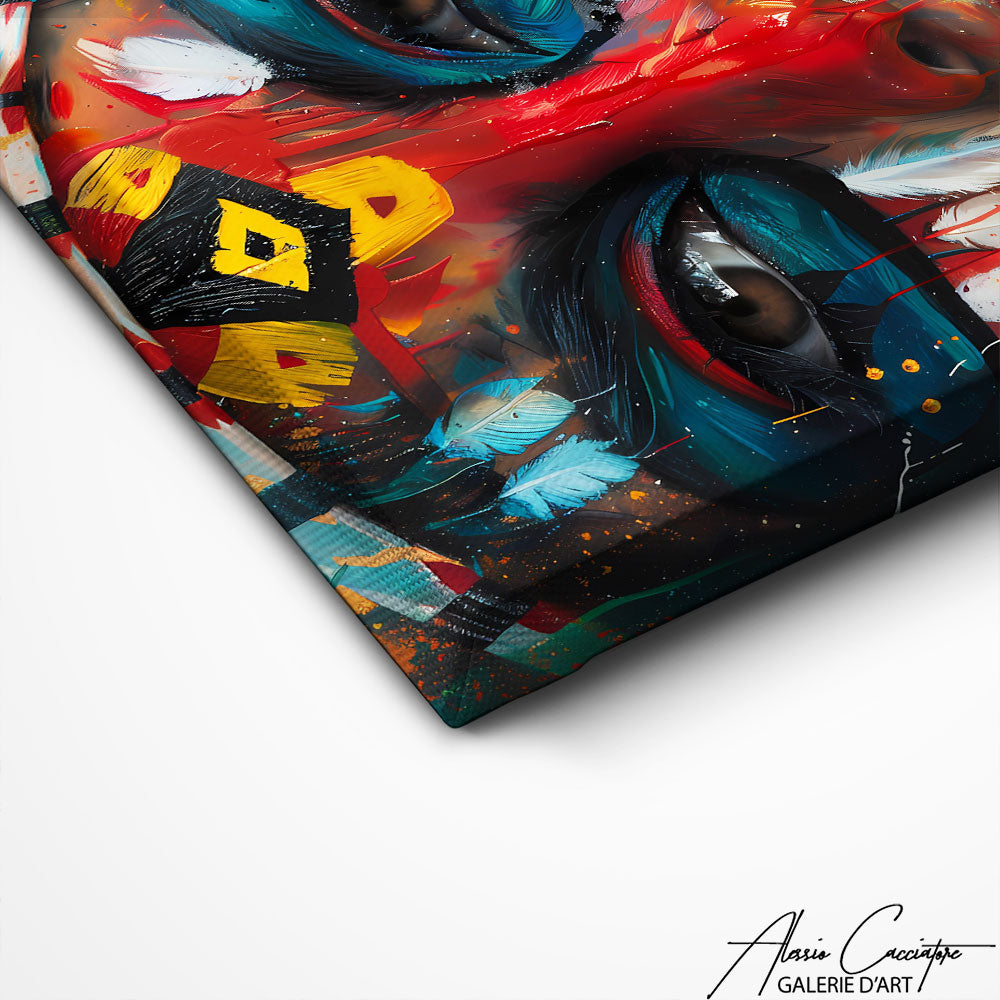 Nos toiles sont imprimées grâce à une encre spéciale resistante aux UV. Cette encre protège les couleurs au fil des années pour conserver le contraste de la peinture.