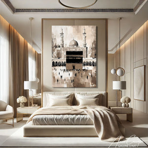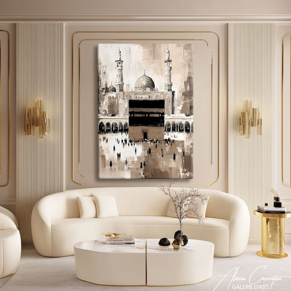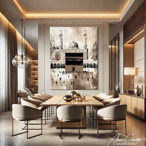 Notre tableau mural d'art islamique devient instantanément le point principal de votre espace. Il crée une présence visuelle majestueuse et inspirante. Les motifs complexes et la composition équilibrée témoignent de la perfection divine. Cette oeuvre transforme radicalement l'ambiance de votre intérieur, alliant impact décoratif et profondeur spirituelle.