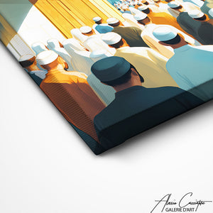Notre tableau d'inspiration islamique transforme élégamment votre intérieur. Parfait pour un espace de prière, il apporte sérénité et raffinement à votre décoration. Les motifs précis et les détails soignés créent une atmosphère de contemplation et d'harmonie. Cette impression sur toile allie tradition spirituelle et esthétique contemporaine, devenant un élément de décoration significatif qui élève l'ambiance de votre espace de vie.