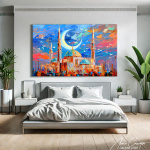 Notre tableau islam capture l’essence de la foi à travers une mosquée noble et un design épuré. Une pièce élégante qui sublime l’espace de vie avec une touche spirituelle. Parfait pour une décoration interieure spirituelle.