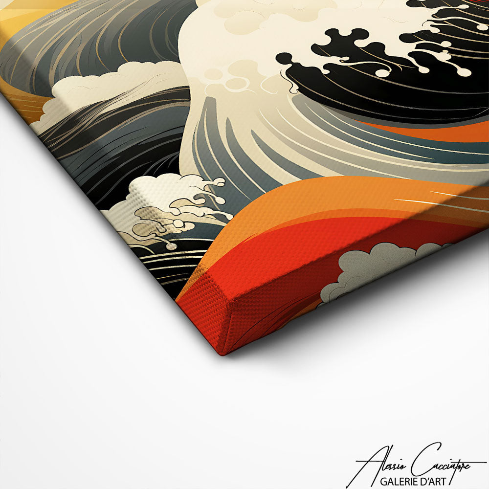 Capturant la puissance et la grâce de l'océan, le tableau de vague japonais est une œuvre d'art dynamique. Son mouvement perpétuel et ses teintes profondes apportent un élément naturel saisissant à tout environnement.