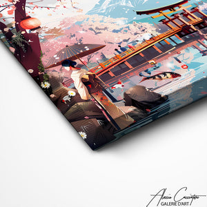 Ce tableau pont japonais, avec ses lignes gracieuses et son intégration dans un paysage naturel, évoque l'équilibre et la beauté des jardins japonais traditionnels. Parfait pour ajouter une touche zen et poétique à votre intérieur.
