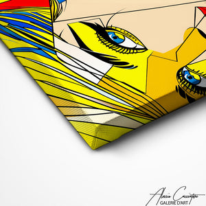 Ce portrait dans un style pop art est une manière unique et artistique de capturer cette femme dans une œuvre d'art mémorable et colorée