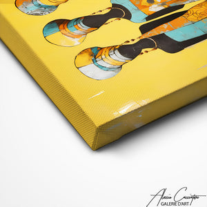 Ce tableau embrasse le thème de l'Afrique dans toute sa diversité, depuis ses paysages jusqu'à ses peuples et cultures. Une œuvre qui célèbre le continent dans une expression artistique riche et variée, parfaite pour tout amoureux de l'Afrique.