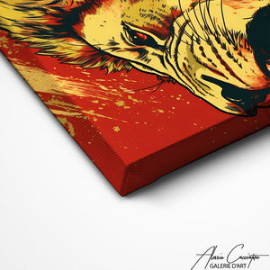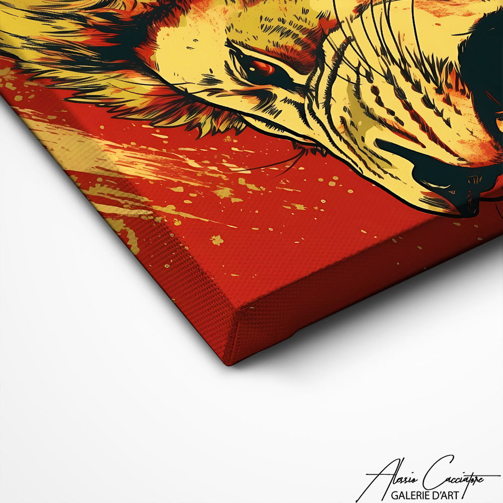 Ce tableau lion rouge saura apporter une touche de tranquillité à votre espace, idéal pour une chambre à coucher ou votre espace de vie.