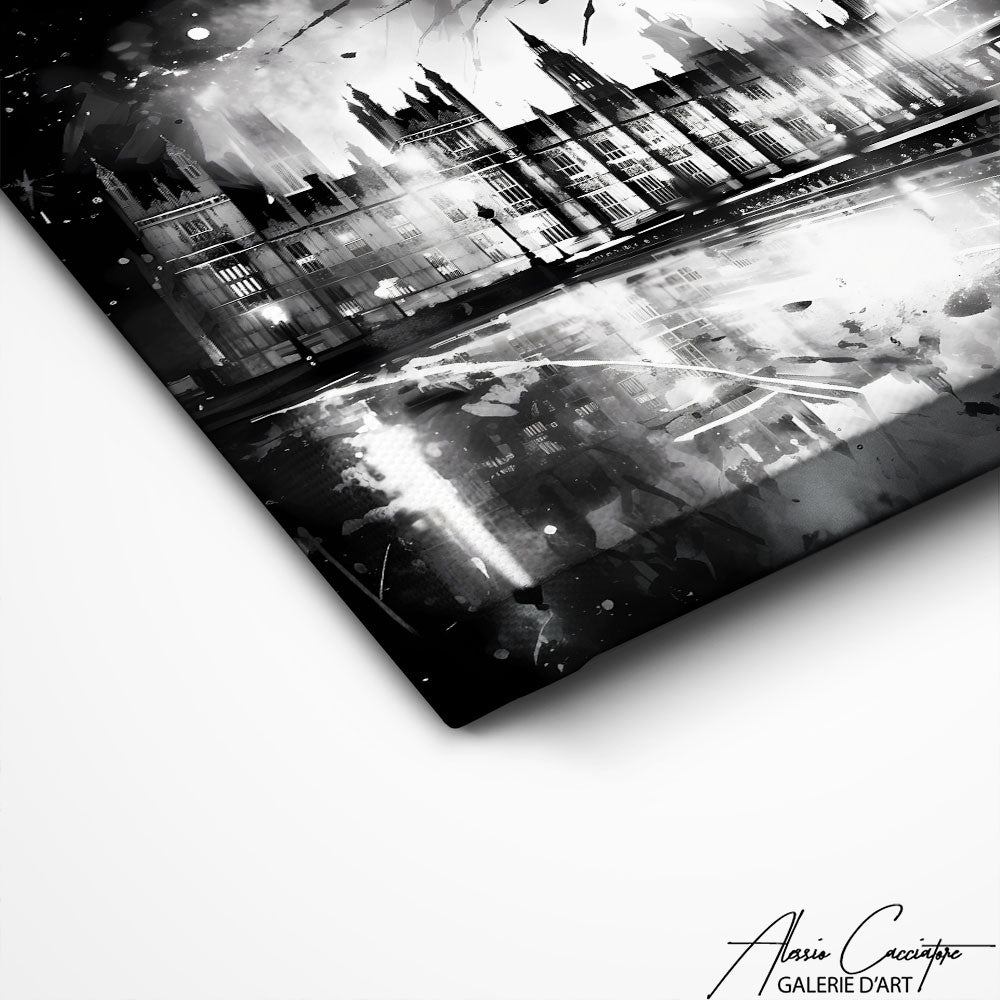 Notre tableau Londres noir et blanc offre une vision intemporelle et élégante de la ville, où le contraste saisissant des tons crée une atmosphère sophistiquée et raffinée.