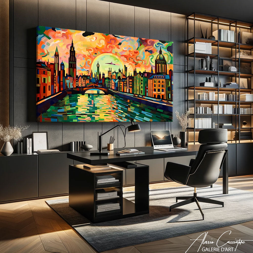 Avec une approche artistique fraîche et contemporaine, notre tableau moderne de Londres capture l'essence de la ville avec une touche de modernité. Parfait pour ceux qui cherchent à incorporer un élément urbain chic dans leur décoration