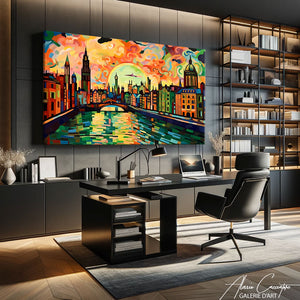 Nos toiles sont imprimées grâce à une encre spéciale resistante aux UV. Cette encre protège les couleurs au fil des années pour conserver le contraste de la peinture.