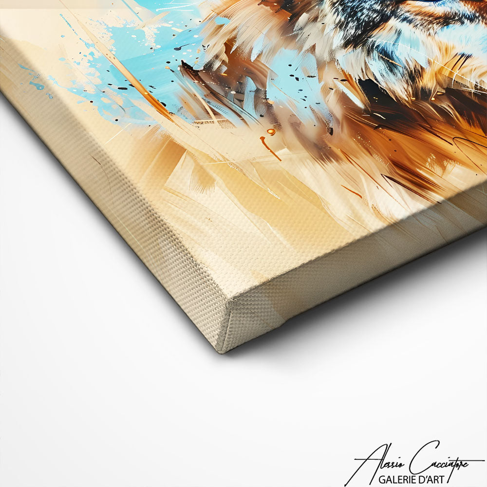 Ce tableau de loup, avec ses détails et ses couleurs profondes, capture le portrait de ce prédateur noble et mystérieux. Parfait pour ceux qui cherchent à intégrer une touche de nature et de force à leur décoration