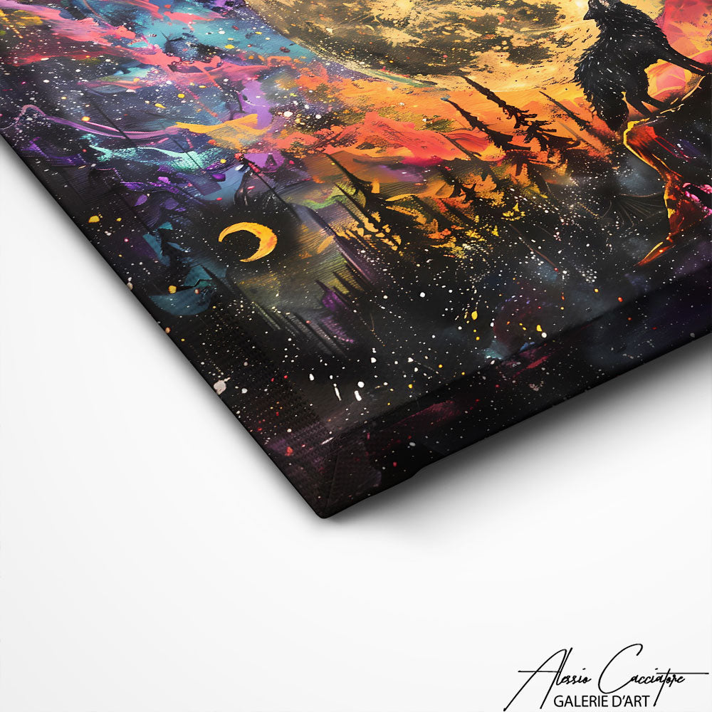Plongez dans une magie avec notre tableau loup pleine lune, où l'animal majestueux se détache sous la lueur mystique de la lune. Parfait pour ajouter une note de mystère et de nature sauvage à votre espace.