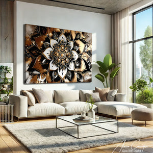 Notre tableau mandala sur toile révèle un mandala marron aux détails abstraits modernes. Ses formes harmonieuses inspirent sérénité et équilibre. Une œuvre parfaite pour décorer une chambre ou un espace de méditation avec style et élégance.