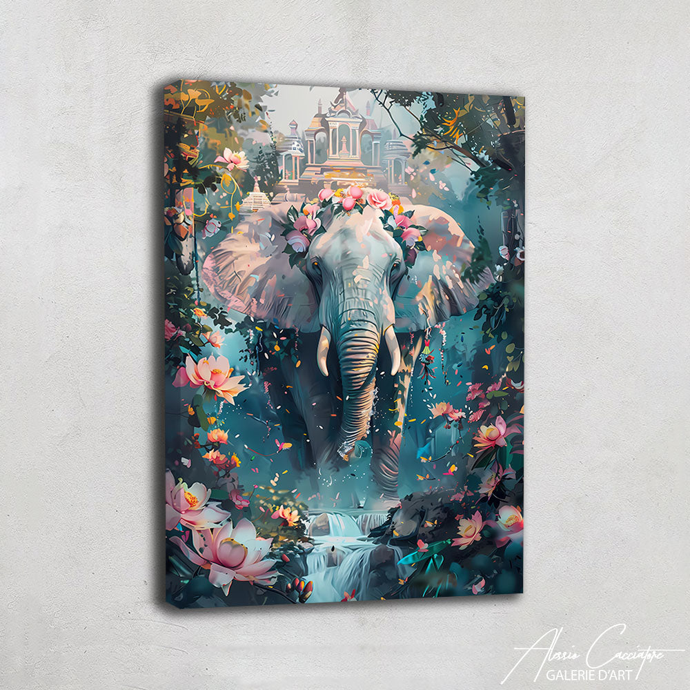 TABLEAU ÉLÉPHANT AVEC FLEUR