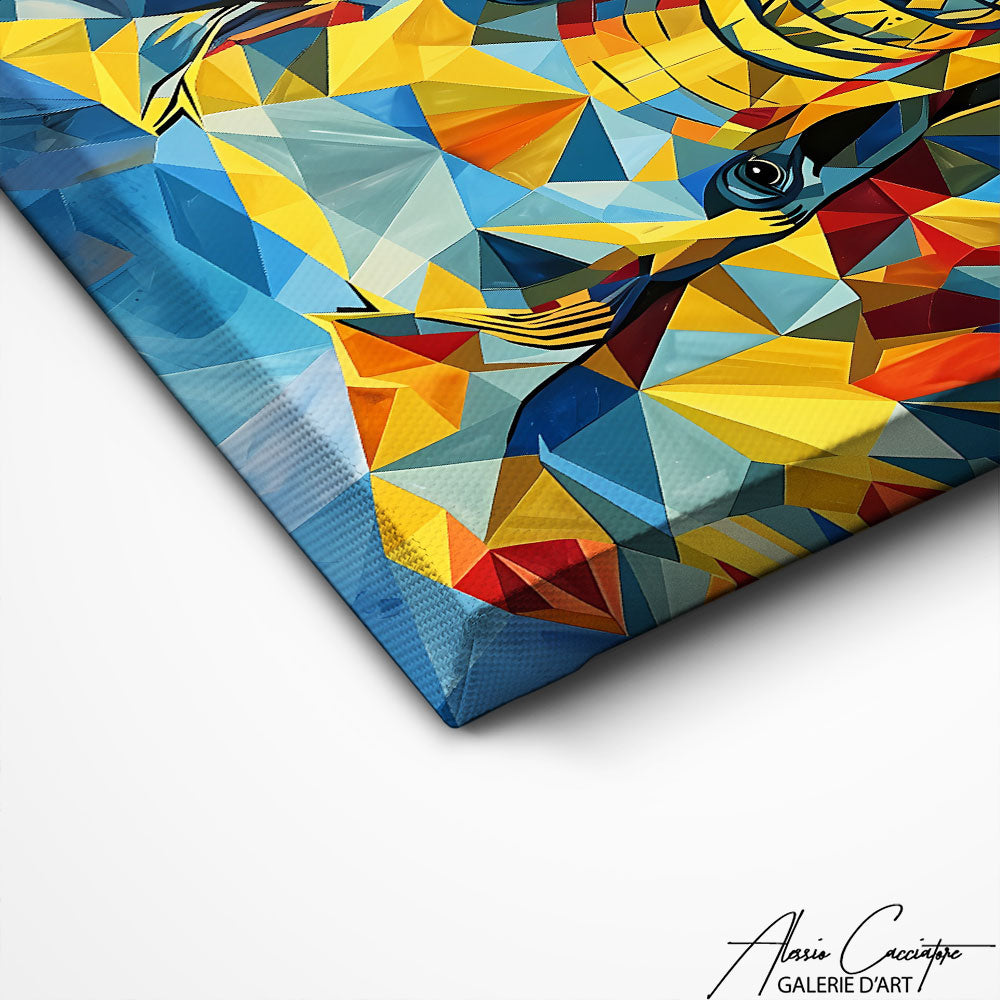 Dans ce tableau éléphant couleur, des nuances riches et variées habillent l'animal emblématique, symbolisant sagesse et puissance. Parfait pour un décor contemporain, il illumine votre espace tout en reflétant la grandeur de la nature