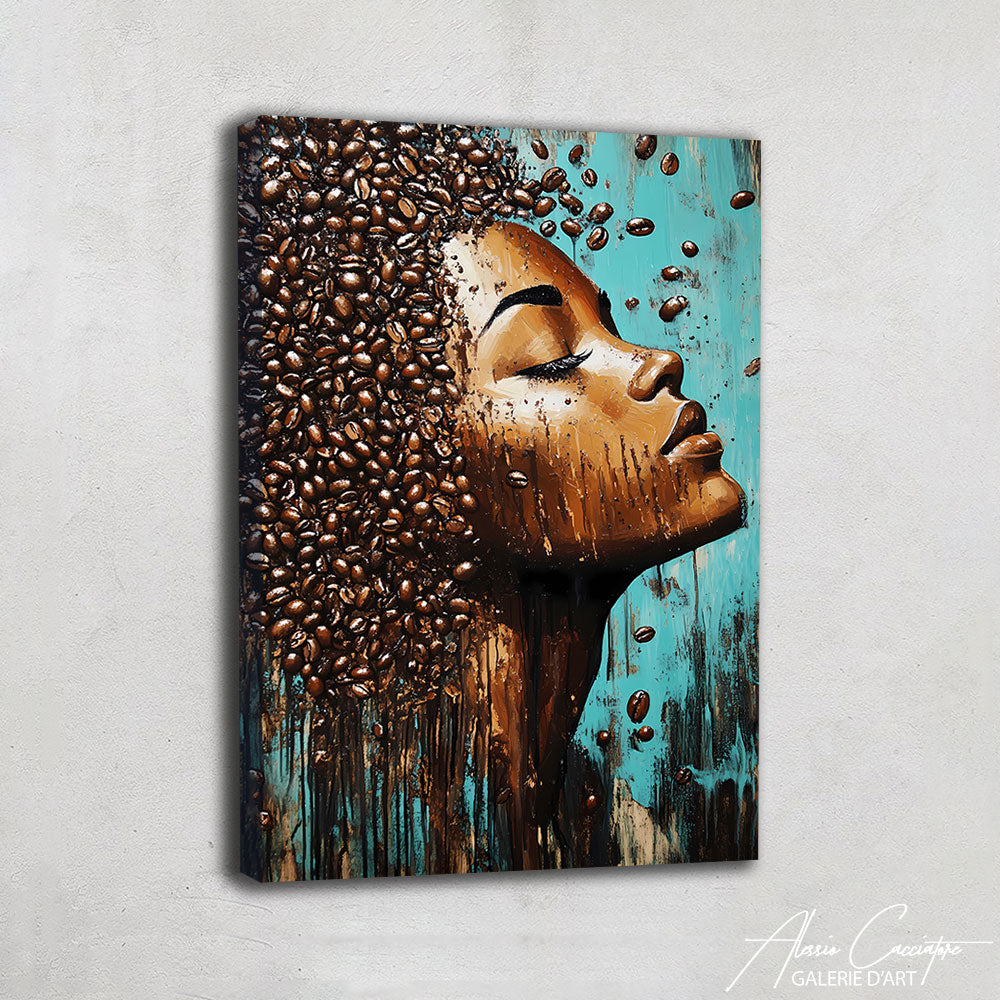 Ce tableau femme africaine de profil dégage une allure majestueuse et gracieuse. Parfait pour décorer un espace contemporain, il met en lumière la beauté et la dignité de la culture africaine à travers un regard artistique.