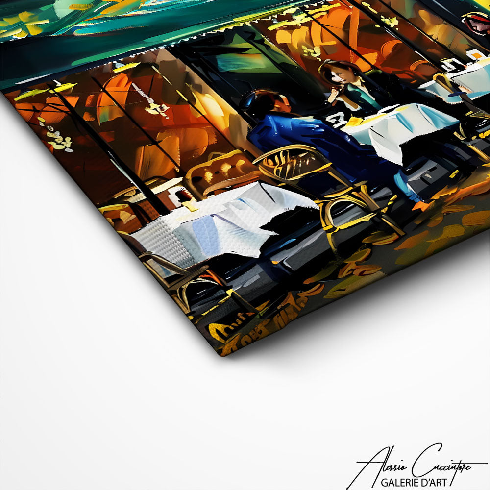 Notre tableau Ville de Paris offre une interprétation abstraite et moderne d’une terrasse parisienne, capturant l’ambiance animée des cafés emblématiques de la capitale. Entre jeux de couleurs, formes déstructurées et touches artistiques, il évoque la convivialité et le charme intemporel des rues parisiennes. Parfait pour un salon ou une salle à manger, il apporte une touche sophistiquée et contemporaine à votre décoration, tout en rendant hommage à l’élégance de Paris