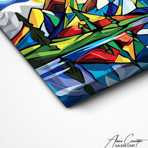 Nos toiles sont imprimées grâce à une encre spéciale resistante aux UV. Cette encre protège les couleurs au fil des années pour conserver le contraste de la peinture.