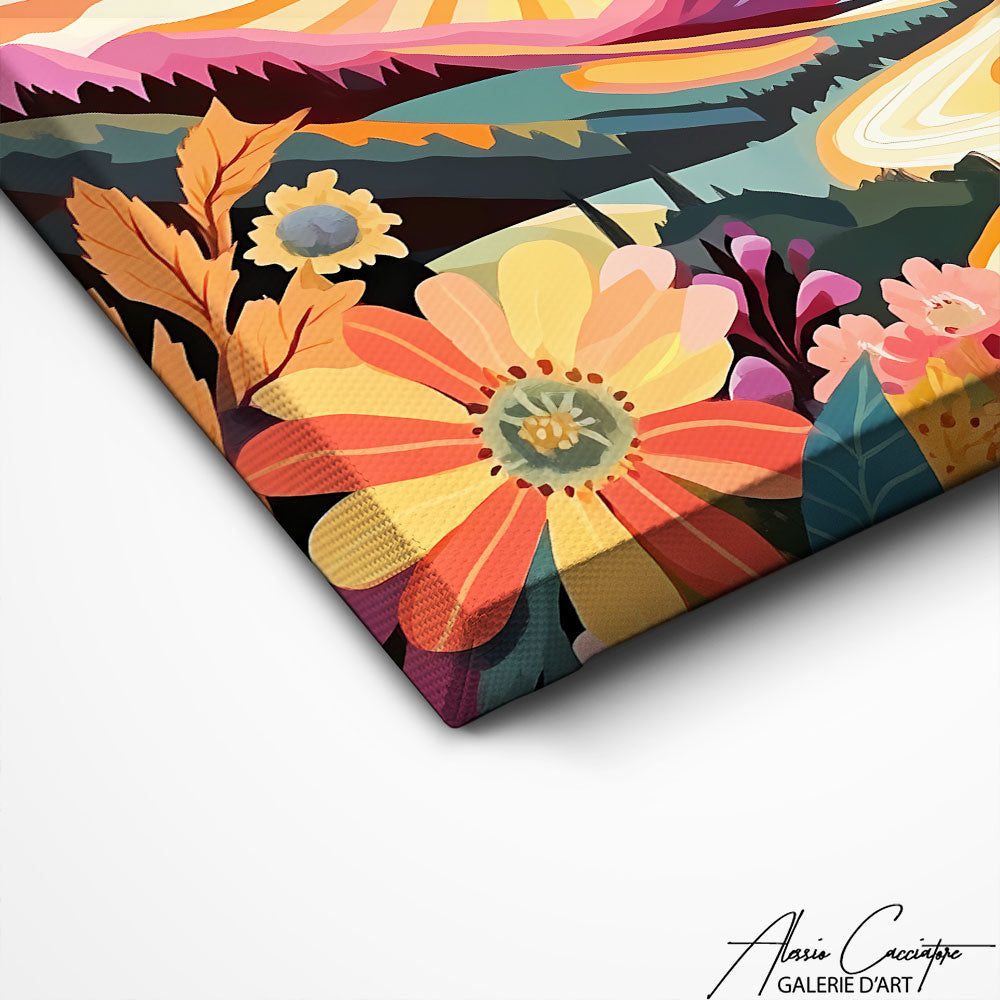 Notre tableau montagne capture toute l’immensité des montagnes, avec des perspectives saisissantes et une ambiance spectaculaire. Il habille un mur avec caractère et élégance. Parfait pour un salon spacieux ou un bureau avec vue symbolique. Ce tableau structure l’espace avec force et raffinement.