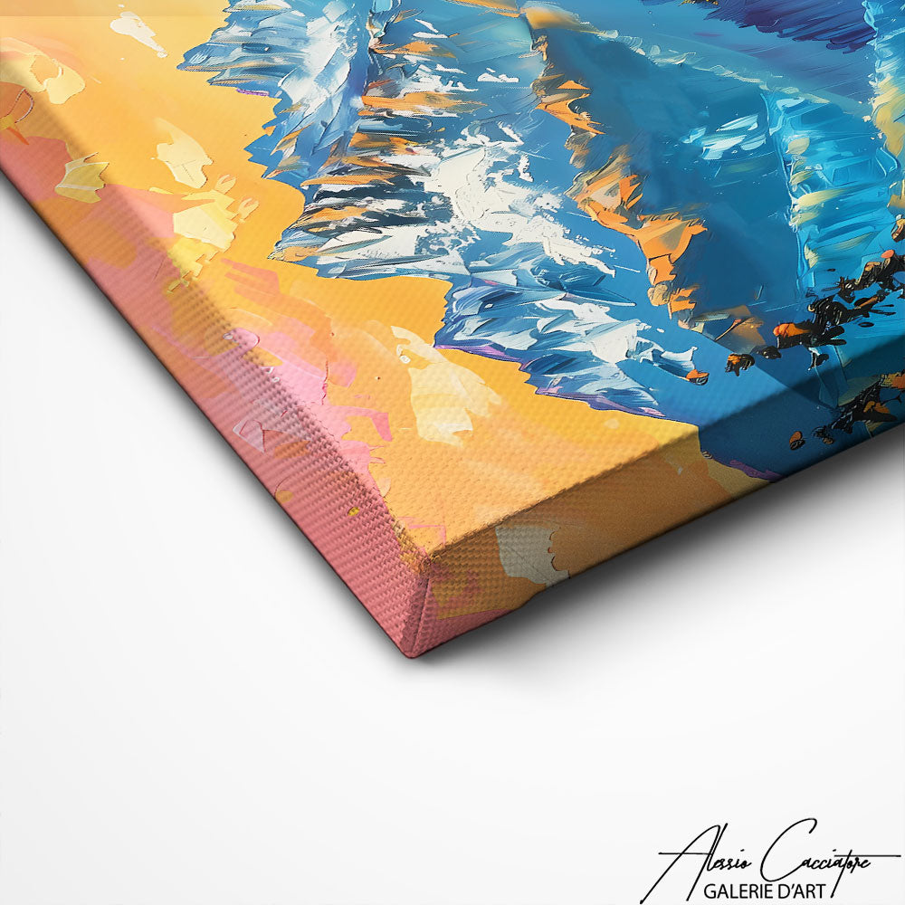 Ce Tableau de montagne, capture la majesté et la sérénité des hauts sommets. Parfait pour ajouter une touche artistique classique à votre espace.
