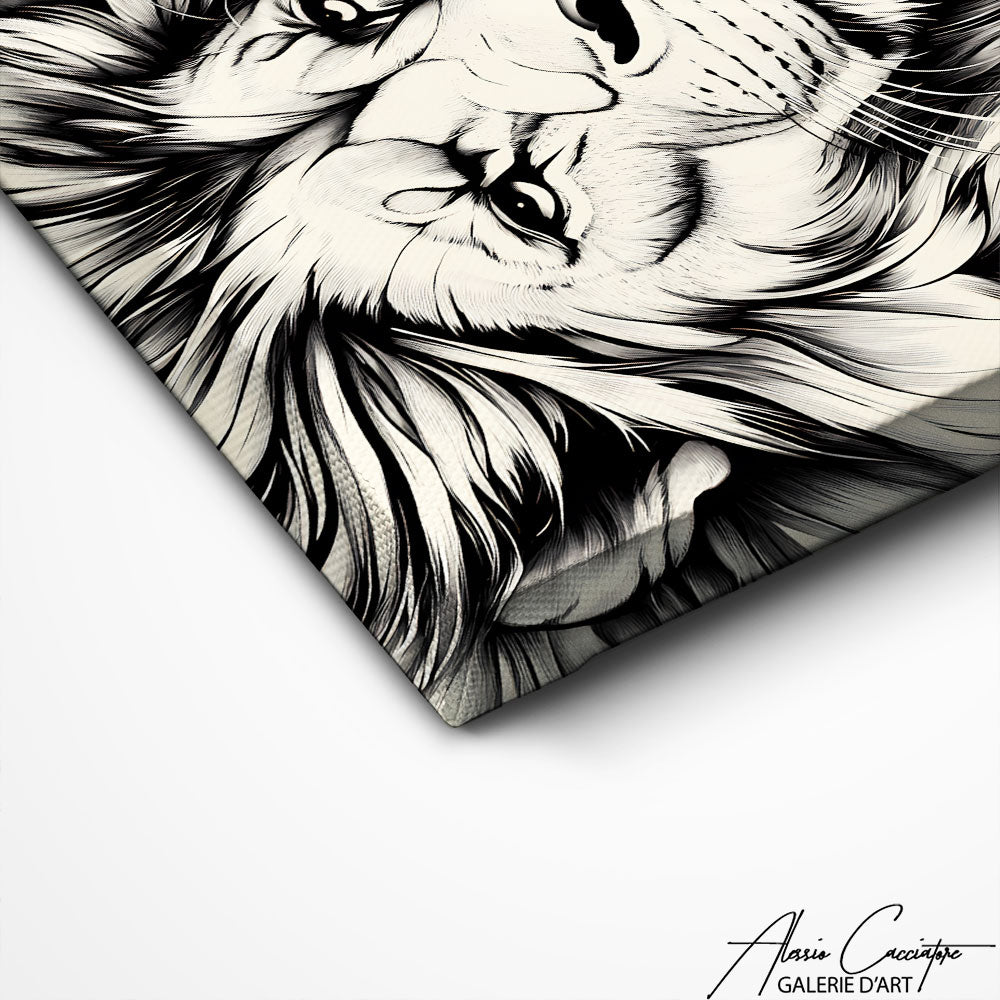 TABLEAU LION NOIR ET BLANC