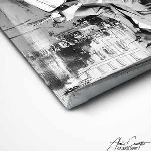 Notre tableau moto vintage met en scène un couple chic des années 80 sur une Vespa en noir et blanc. Une scène rétro élégante qui dégage charme et authenticité. Idéal pour une décoration à la fois moderne et nostalgique.