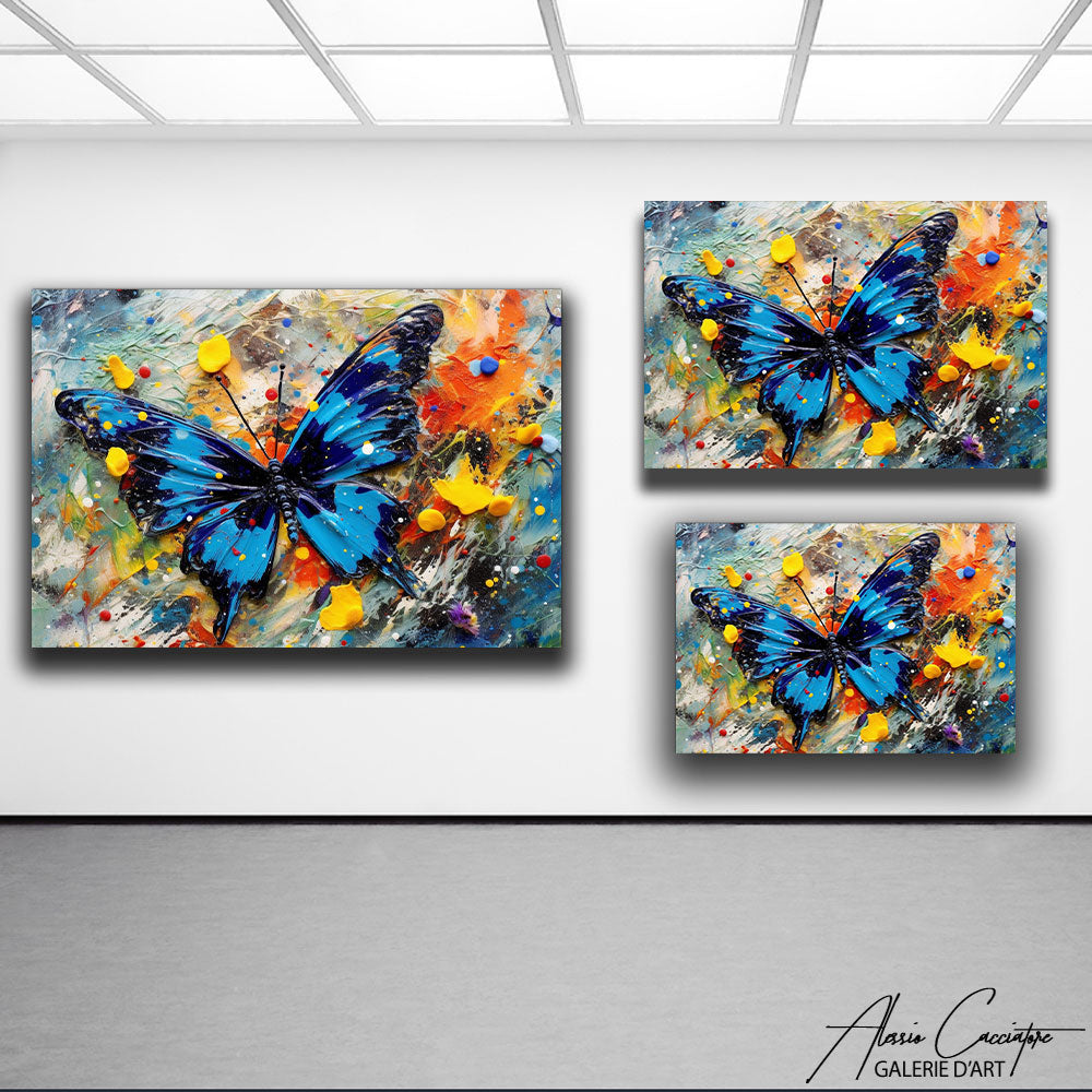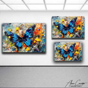 Avec le tableau papillon acrylique, la vivacité des couleurs et la fluidité de la technique acrylique donnent vie à ce papillon, le rendant presque palpable. Une pièce qui séduira les amateurs d'art moderne.