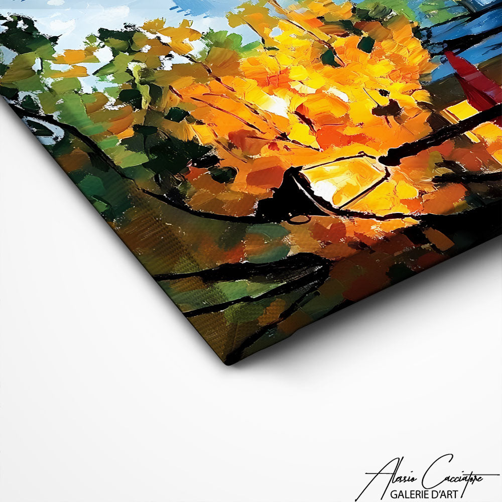 Notre tableau parisien capture l’âme de la capitale à travers une scène romantique et intemporelle. Il évoque le charme discret de la ville lumière. Idéal pour une décoration douce et sophistiquée. Ce tableau apporte poésie et élégance à vos murs.