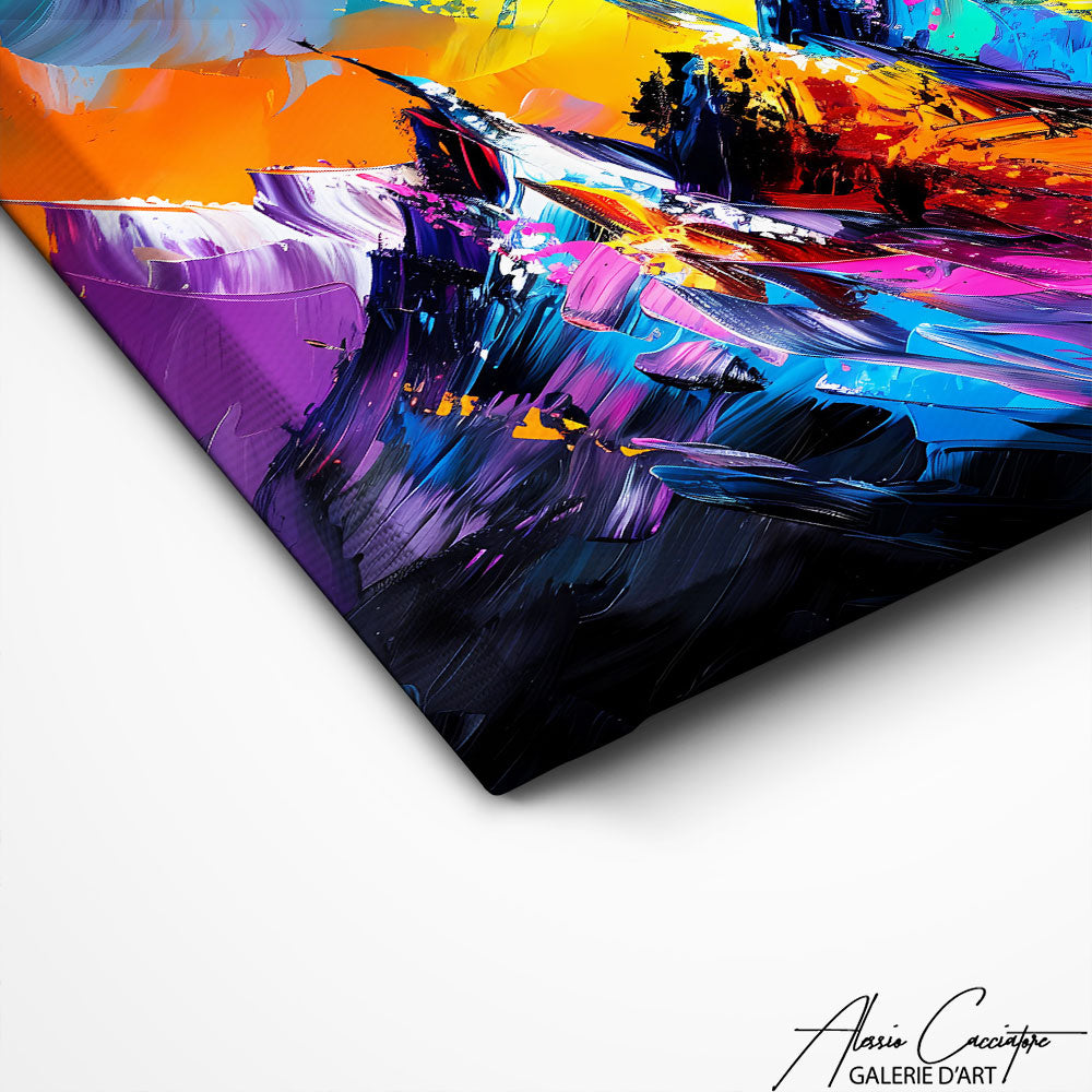 Nos toiles sont imprimées grâce à une encre spéciale resistante aux UV. Cette encre protège les couleurs au fil des années pour conserver le contraste de la peinture.
