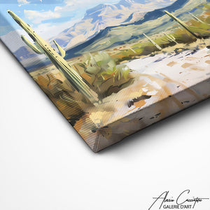 Notre tableau paysage montagne est une immersion dans l'imposante beauté des montagnes. Cette œuvre reflète la majesté et la tranquillité des hauteurs, idéale pour tous ceux en quête d'inspiration et de sérénité.