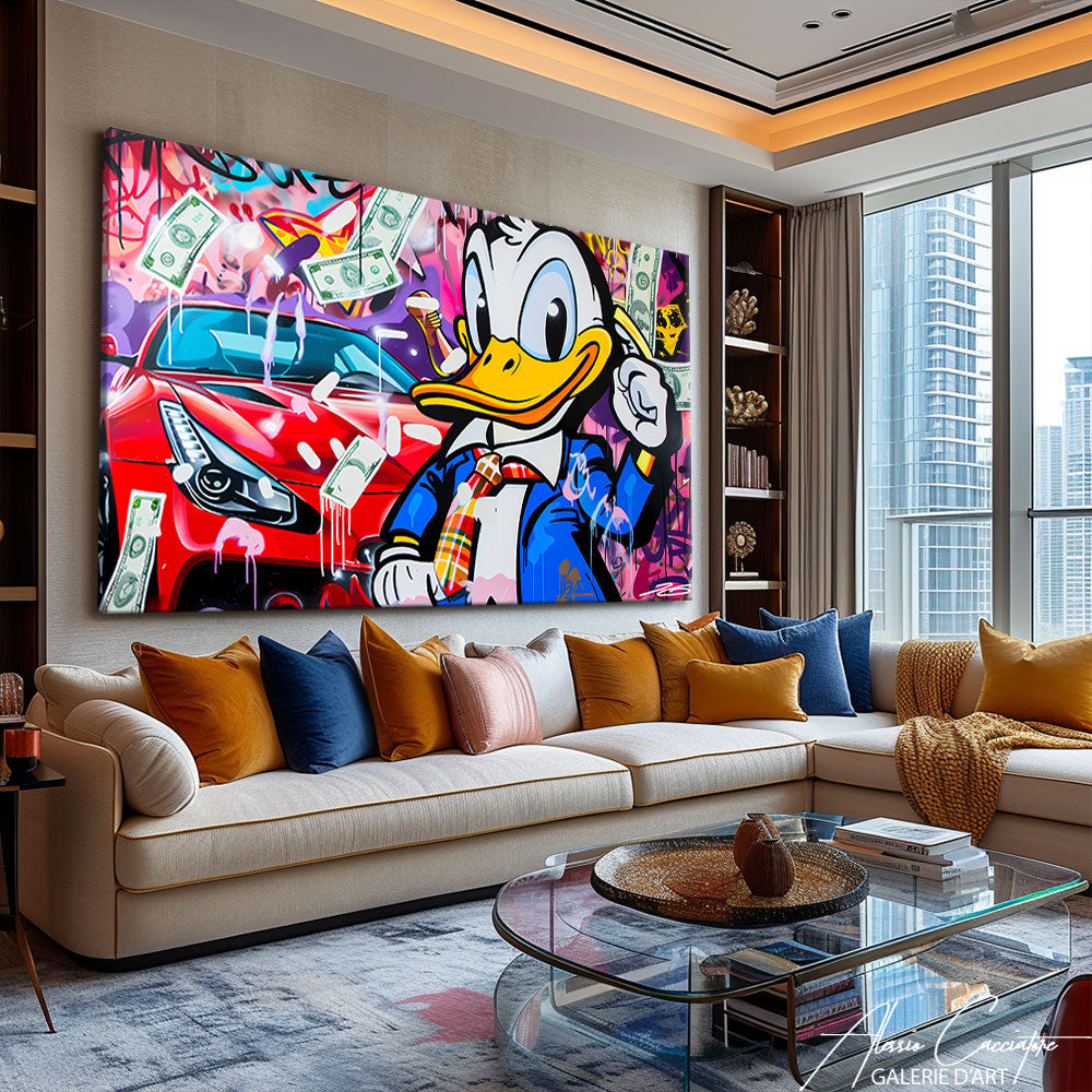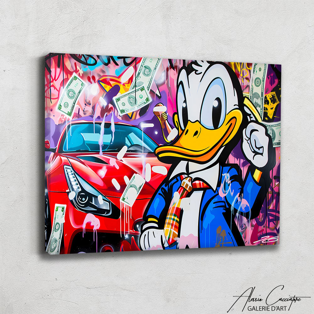 Dans un style street art, l'artiste Alessio Cacciatore vous propose son tableau de Picsou disponible exclusivement sur la galerie d'art