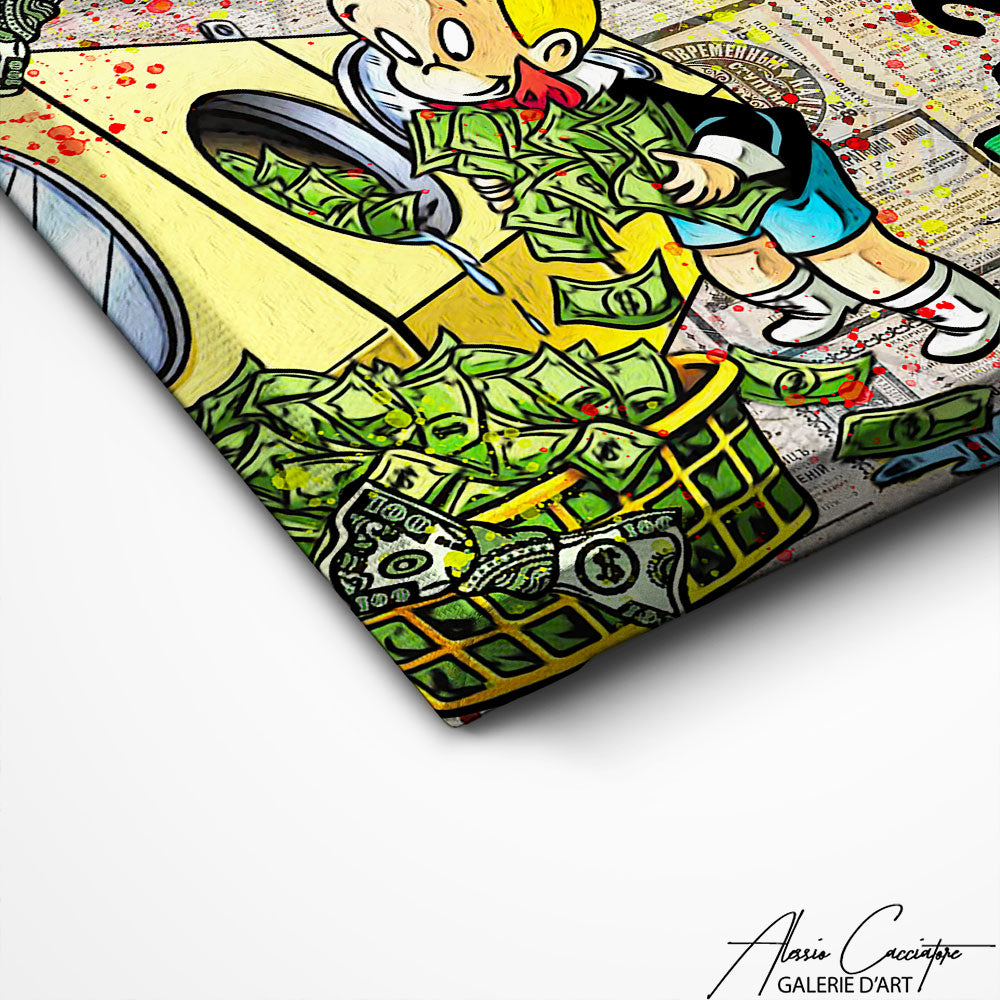 Ce tableau Picsou célèbre l'iconique milliardaire avare de Disney dans une composition dynamique et amusante. Entouré de piles d'argent et de symboles de richesse, le personnage de Picsou incarne la quête du succès financier avec une touche humoristique. Parfait pour apporter une ambiance ludique et décalée à votre intérieur, tout en reflétant une fascination pour l'abondance et la réussite.