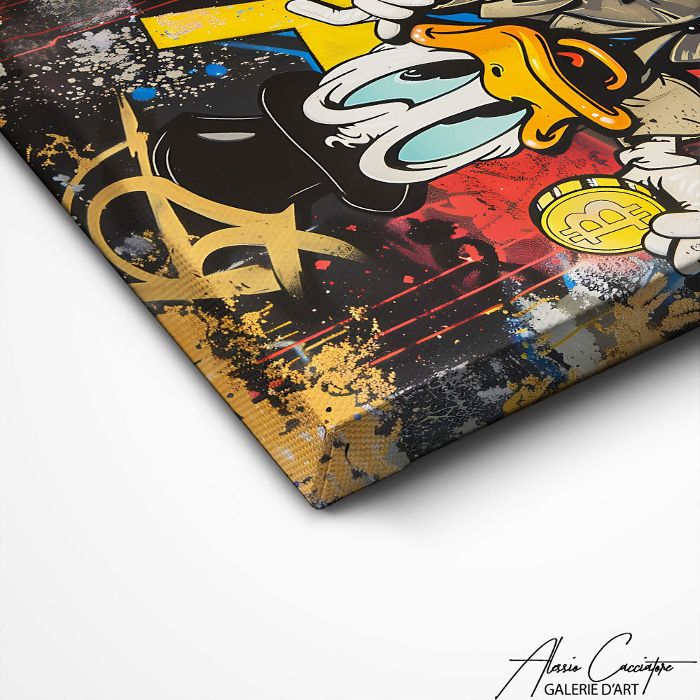 Fusionnez tradition et modernité avec notre tableau Picsou bitcoin, où l'iconique canard plonge dans un monde de cryptomonnaies. Parfait pour les amateurs de finance et de technologie souhaitant une décoration originale