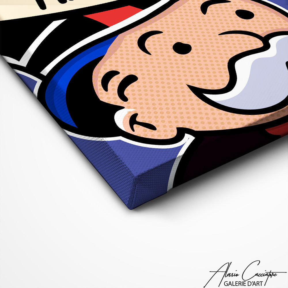 La galerIe vous présente son tableau Monopoly art, une œuvre dynamique qui joue avec des couleurs contrastées pour créer un paysage visuellement stimulant.