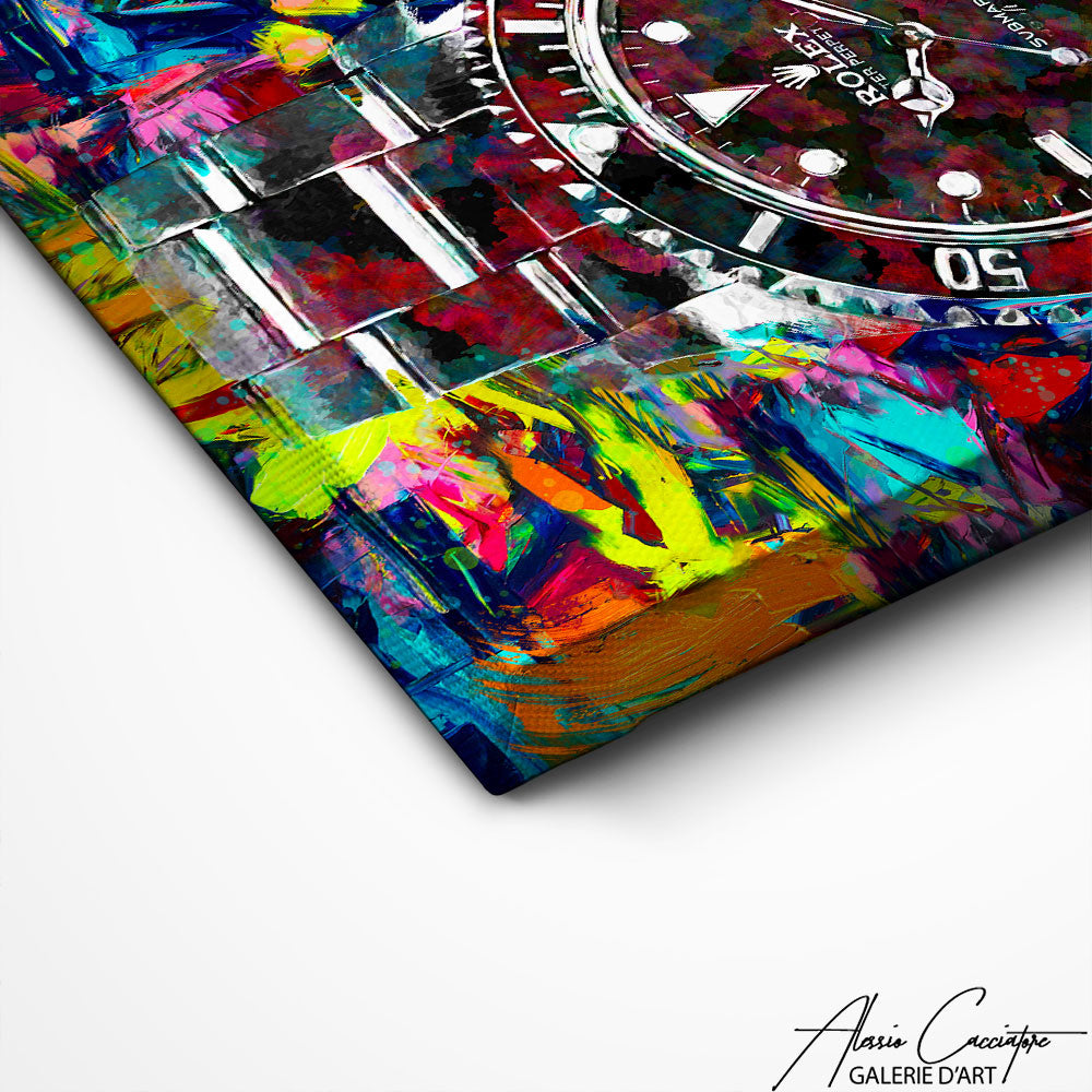 Illuminez votre décoration intérieure avec ce tableau Rolex pop art, une célébration de la beauté complexe de l'artisanat mécanique et de l'expression artistique.