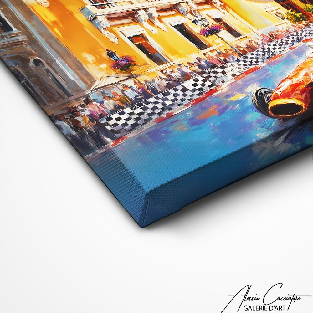 Notre tableau Monaco vintage met en scène une course automobile rétro devant le célèbre casino de Monaco. Une œuvre éclatante, symbole du luxe et du glamour de la Côte d’Azur.