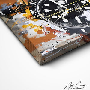 Apportez une ambiance d'élégance et de performance à votre espace avec ce tableau Rolex Submariner, célébrant l'iconique montre de plongée. Parfait pour les passionnés de haute horlogerie.