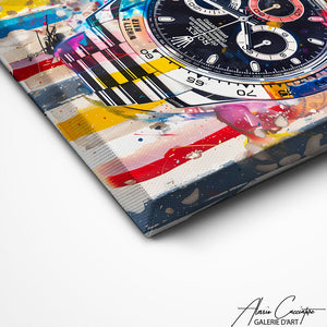 Ce tableau Rolex, avec ses détails précis et ses couleurs harmonieuses, célèbre l'horlogerie de luxe. Idéal pour les passionnés de montres et ceux qui apprécient l'élégance intemporelle.