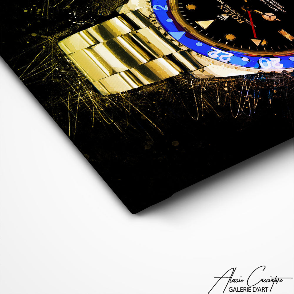 Plongez dans les détails exquis de ce tableau rolex, un objet de conversation captivant qui illustre le dévouement de l'artiste à la précision et à l'élégance.