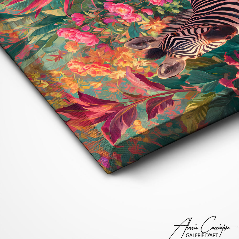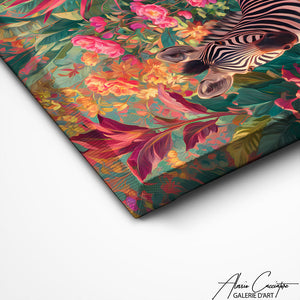 Notre tableau zèbre salle de bain met en scène une adorable zèbre profitant d’un bain dans une baignoire fleurie. Une création originale et exotique qui transforme votre espace en oasis artistique.