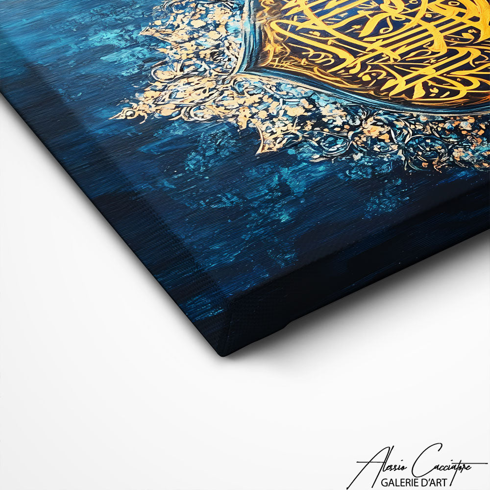 Parfait pour un salon, notre tableau islam associe calligraphie et design moderne, créant une décoration élégante et significative. Il s’intègre harmonieusement dans tout espace de vie.