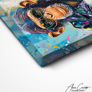 Ce tableau de singe capture l'esprit espiègle de l'animal, combinant des détails réalistes avec des touches artistiques. Parfaite pour ceux qui apprécient l'art animalier, elle ajoute une note de caractère et d’originalité.