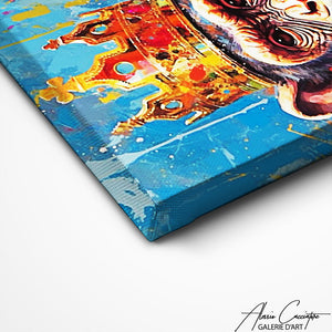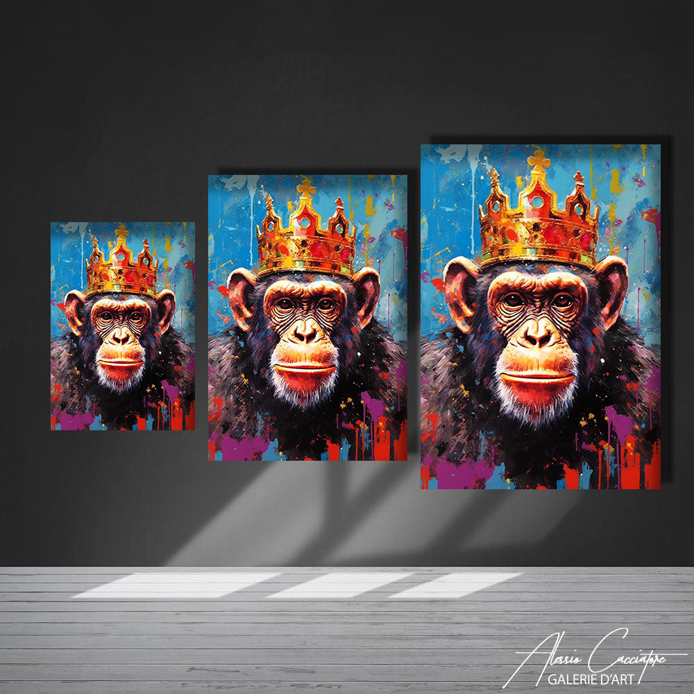 Éclatant de vie et d'énergie, ce tableau de singe en couleur révèle un animal sublimé par une palette colorée, reflétant son esprit espiègle et sa curiosité insatiable.