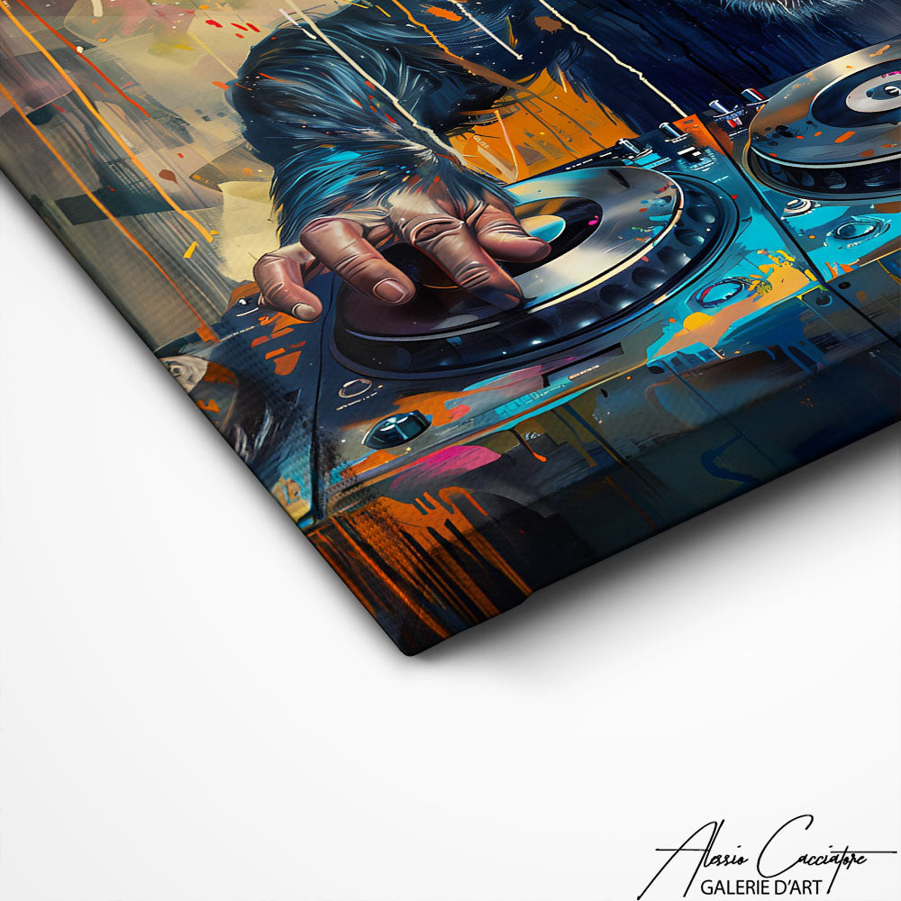 Incarnant l'esprit du hip hop, ce tableau de singe avec des éléments de cette culture musicale est vibrant et énergique, parfait pour un intérieur moderne désireux de refléter une passion pour la musique et l'art urbain.