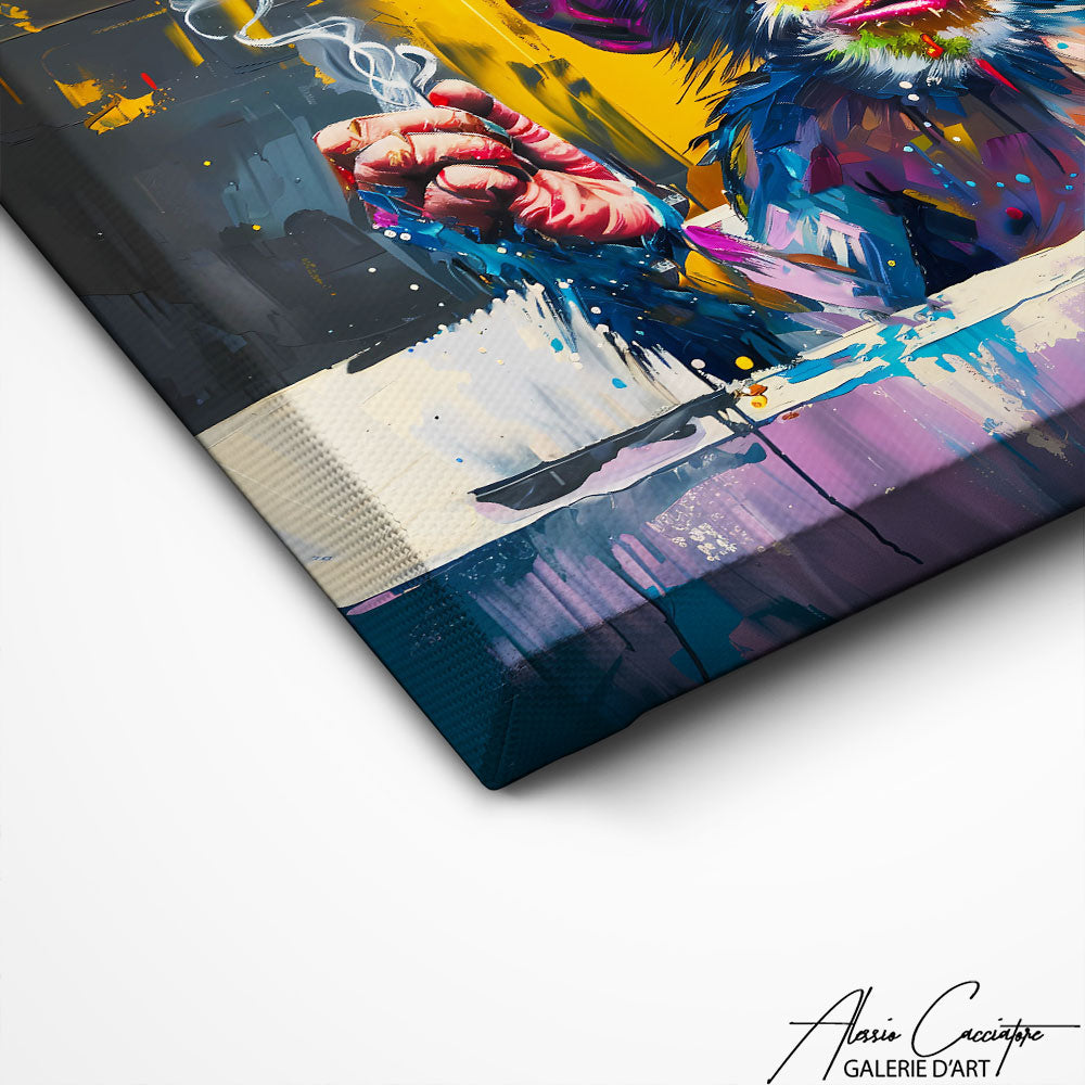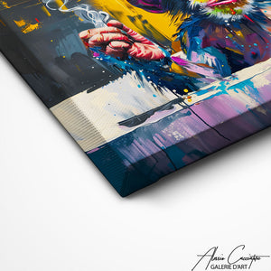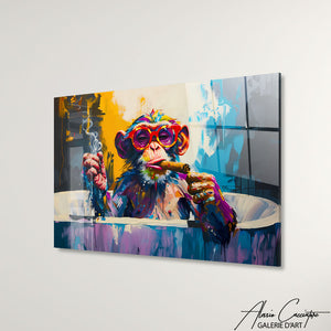 Dans un style moderne et original, l'artiste a souhaiter representer un singe portant des lunettes dans ce tableau, une œuvre qui marie humour et mode pour un résultat qui captivera tous ceux qui la voient.